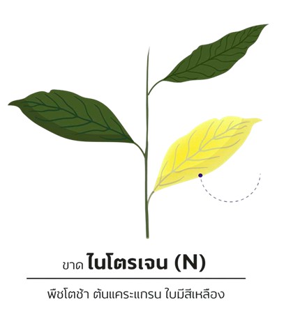 ไนโตรเจนเป็นธาตุที่จัดว่าเคลื่อนที่ได้ในพืช ดังนั้น เมื่อส่วนของพืชที่กำลังเจริญเติบโต (ใบและยอดอ่อน) ได้รับไนโตรเจนไม่เพียงพอ ไนโตรเจนที่สะสมอยู่ในส่วนที่เป็นใบแก่จะถูกเคลื่อนย้ายไปยังส่วนที่เป็นใบอ่อน ทำให้พืชแสดงอาการผิดปกติ