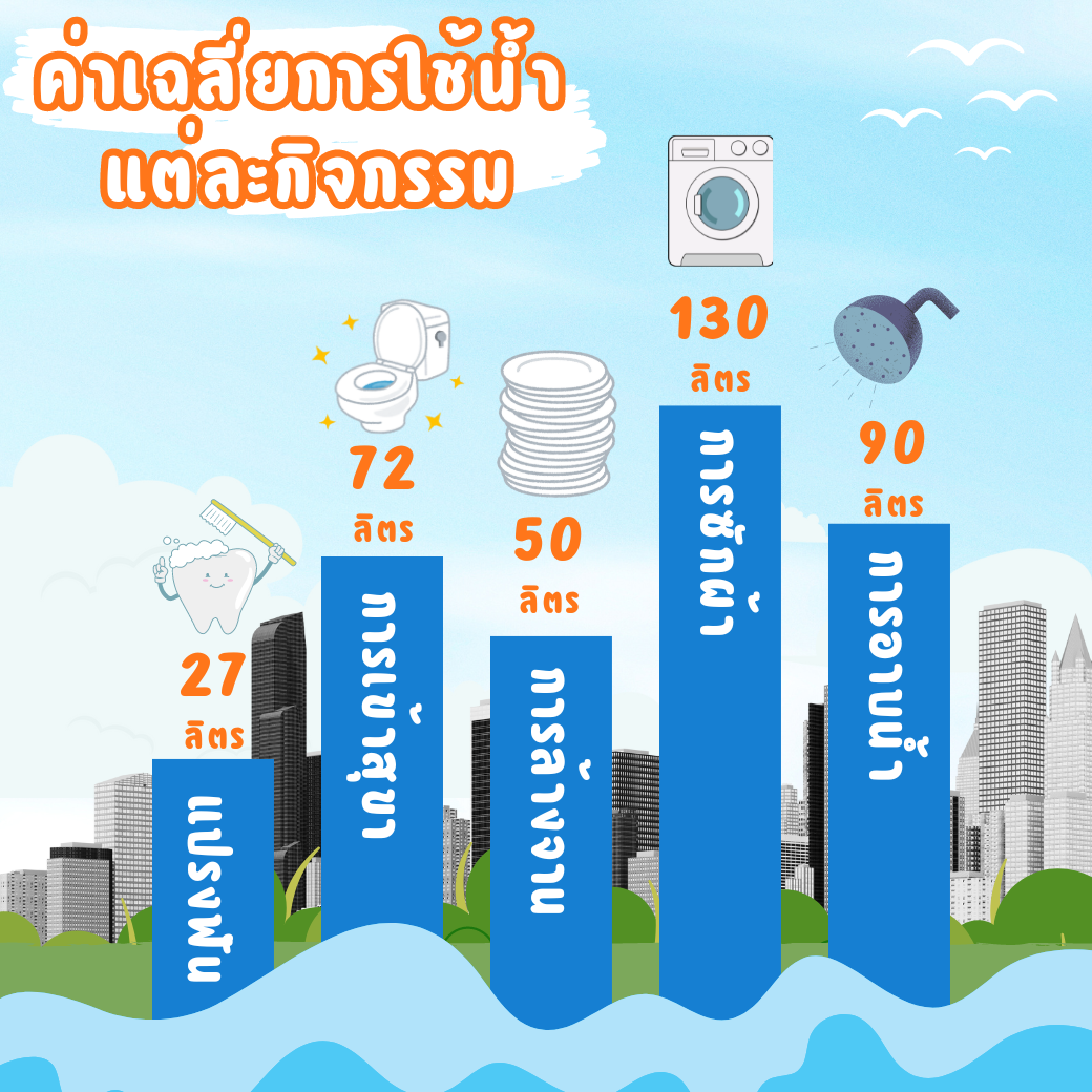 Did you know? Currently, we use an average of 200 liters of tap water per person per day. Let's take a look at how much water is used in each activity...
